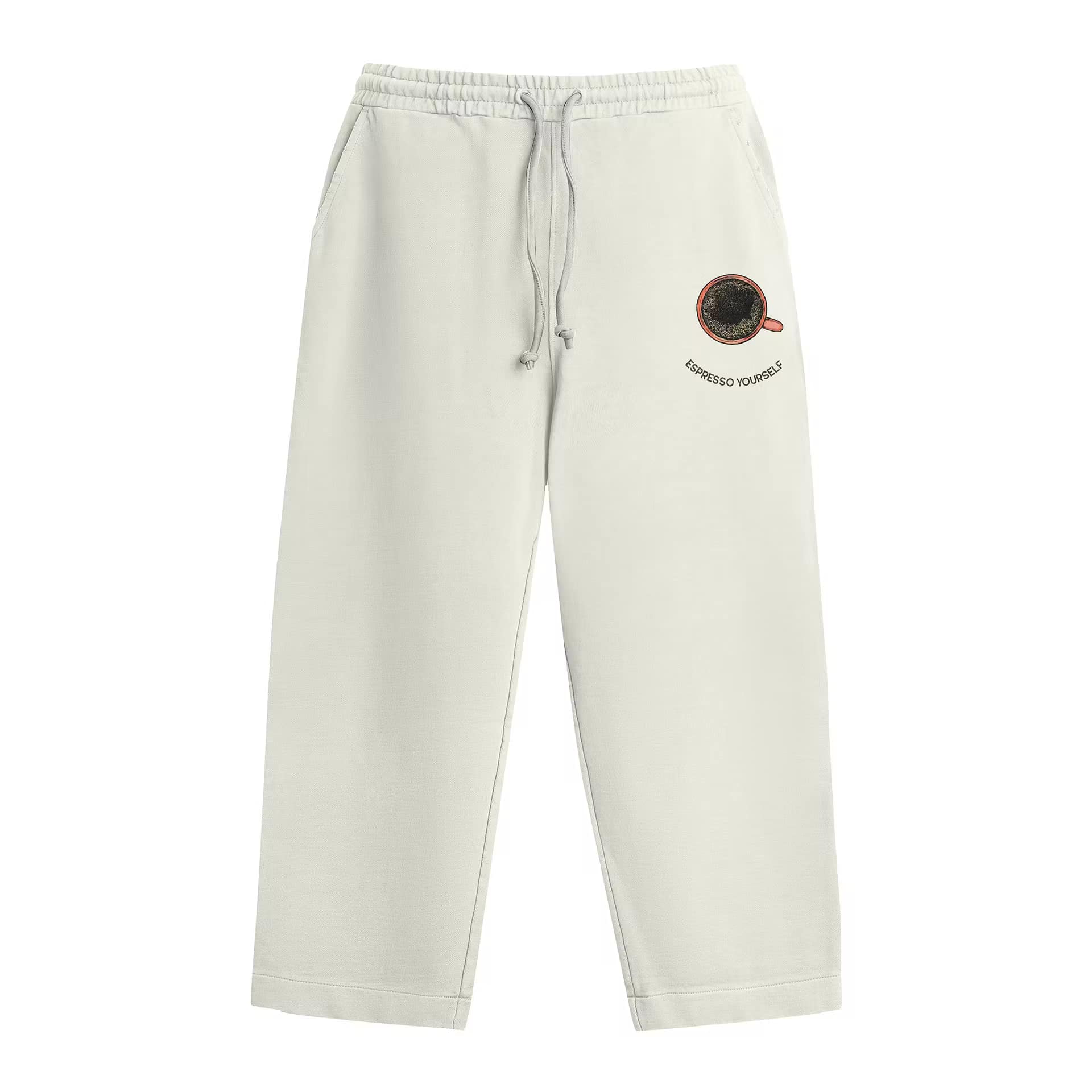 Kick back in comfort and style with our Espresso Yourself oversized sweatpant. Crafted from premium cotton fleece, it brings that relaxed vibe you crave while adding a playful caffeine twist with its coffee cup print and witty slogan. Perfect for coffee lovers and those who like to chill in style, this cozy essential is made to pair effortlessly with hoodies, crop tops, or tees. Stay comfy, stay cool — and don’t forget to espresso yourself!