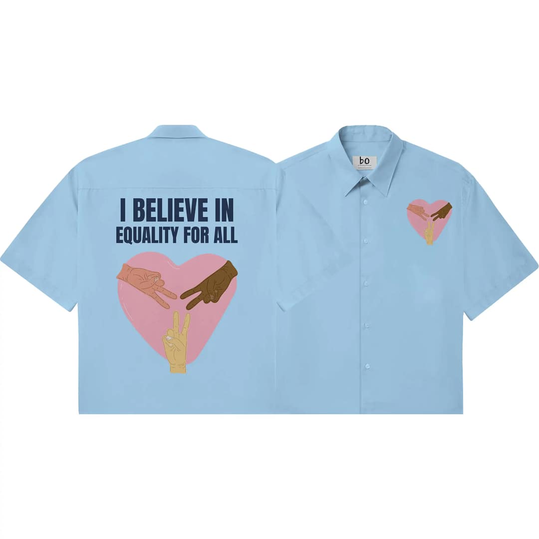 • Baby Blue base with “I Believe In Equality For All” graphic print