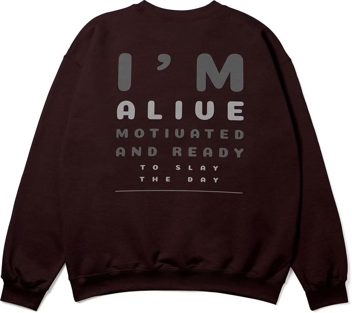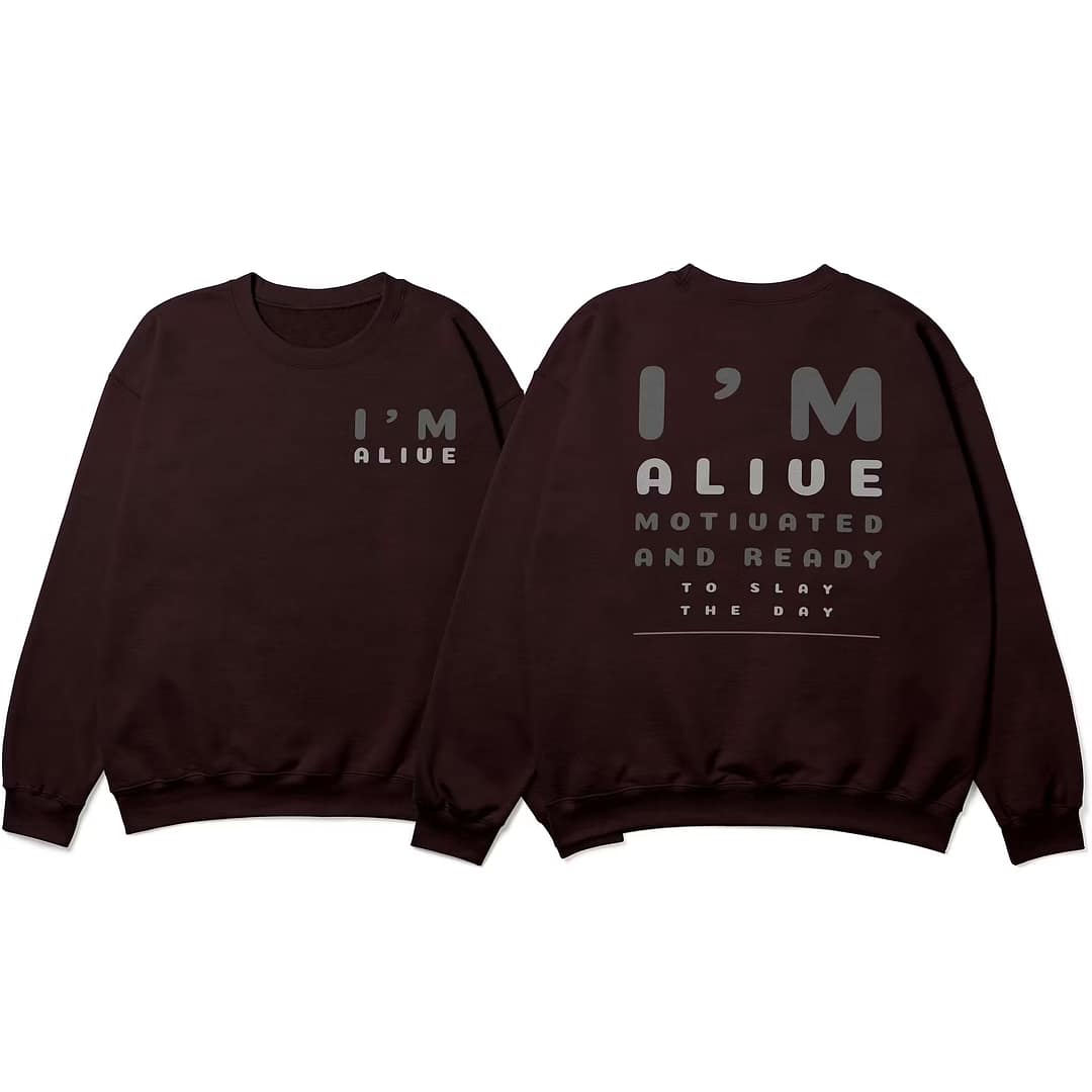 Fuel your confidence with this oversized black sweatshirt featuring the empowering quote “I’M ALIVE, MOTIVATED AND READY TO SLAY THE DAY.” Made from a premium cotton blend, this sweatshirt delivers unmatched comfort with a modern oversized fit. Whether you’re heading to the gym, a casual outing, or just want to stay cozy while looking stylish, this piece is a statement of motivation and strength. Designed for those who wake up ready to conquer.