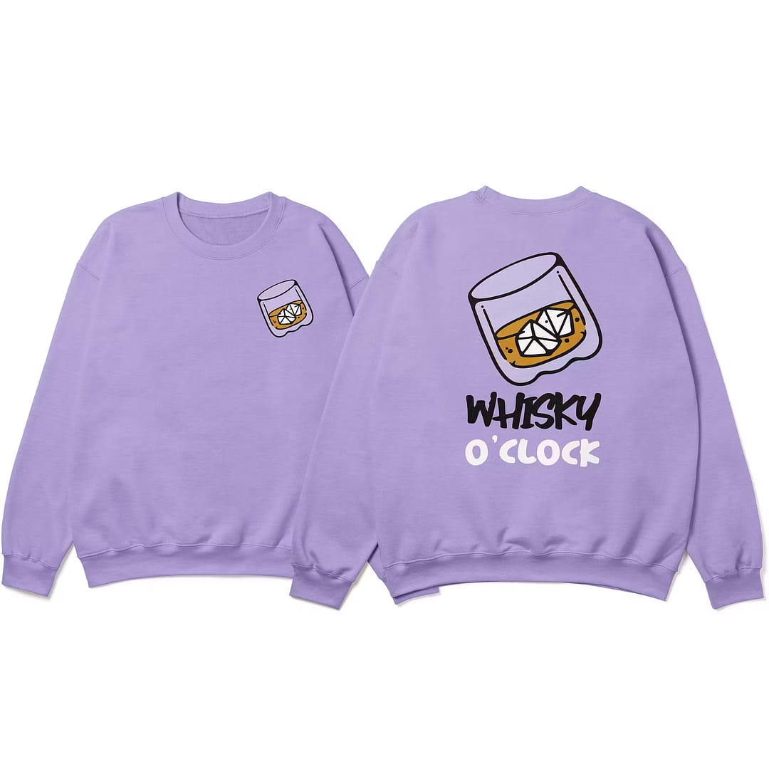Add some playful energy to your wardrobe with this oversized lavender sweatshirt featuring the bold whiskey glass “O’CLOCK” print. The soft pastel base adds a trendy streetwear touch, while the fun graphic makes it a statement piece for parties, casual hangouts, or everyday style. Made from a premium cotton blend, it delivers unmatched comfort with a relaxed oversized fit – perfect for those who like mixing cozy vibes with bold designs.